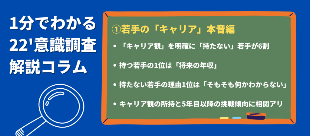 【2022若手意識調査:徹底解説①】キャリア観を明確に「持たない」若手が6割、一方持つ若手に明確な挑戦傾向も~今こそ若手に「キャリア」観育成が必要な理由