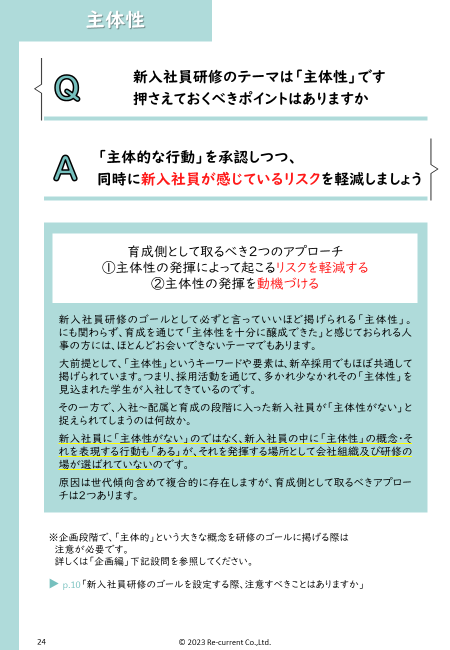 新入社員研修のテーマは「主体性」です。押さえておくべきポイントはありますか(導入研修企画編~“これ”だけは身に着けてほしい!)