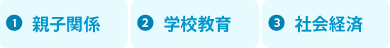 1つ目は親子関係、2つ目に学校教育、3つ目が社会経済です。